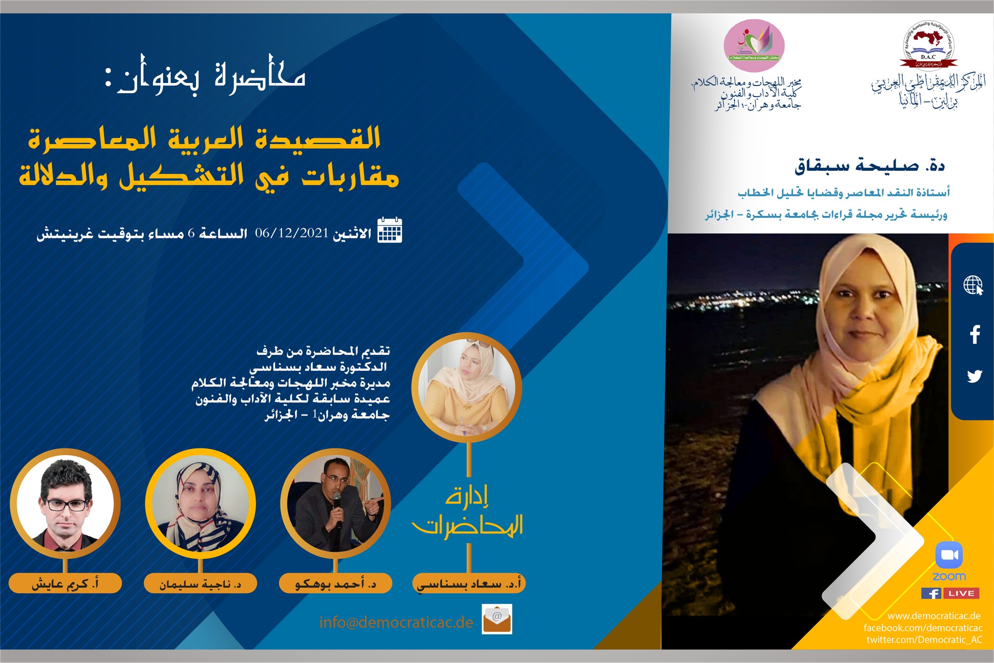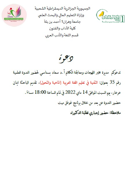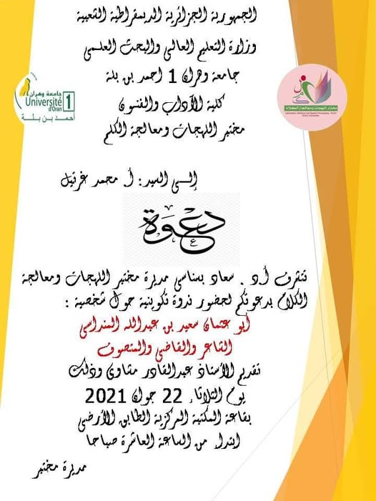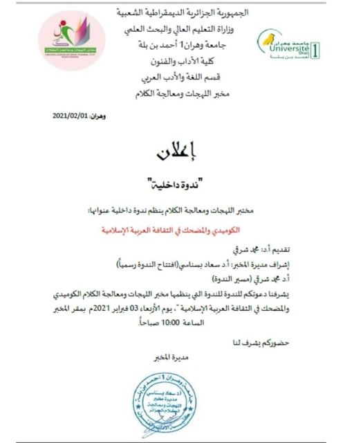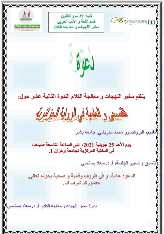 3- الفرقة الثالثة: اللهجة والفنون بإشراف البروفيسور شرقي تعرف السّاحة الأدبيّة الجزائرية ثراء من حيث طبع وتأليف بحوث في مختلف الألوان الأدبيّة، سواء بالفصحى أم اللّهجة. والفنون الأدبيّة نثريّة كانت أم شعريّة لها سحرها وتأثيرها على متلقّيها، وما يلاحظ في السّنوات الأخيرة اهتمام وزارة الثّقافة بالتّراث، والثّقافة الشّعبيّة، وطبع ما يستحقّ من بحوث في هذا المجال. ومنه وانطلاقا من ذلك، اختارت الفرقة الرّابعة البحث في إشكاليّة توظيف اللّهجة في هذه الفنون الأدبيّة، بالرّجوع إلى الشّعر وتتقاطع مع الفرقة الثّانية في ذلك، وستركّز على الفنون النّثريّة المكتوبة باللّهجة أو التّي وظّفت بشكل أو بآخر اللّهجة، وبخاصّة الرّوايات والقصص، وكذا الفنون المسرحيّة والتّمثيليّة؛ فالكثير من الأفلام الثّوريّة مثلا: (معركة الجزائر، والدّار الكبير، الحريق...) كان لها بالغ التّأثير على الذّاكرة الجزائريّة، وبقيت أحداثها ووقائعها راسخة.