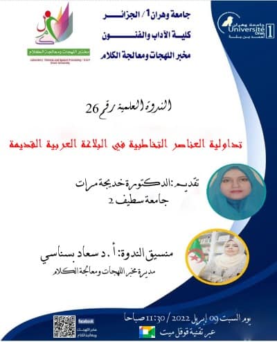 4- الفرقة الرابعة: اللّهجة في المجال البصري والوسائطيات: بإشراف البروفيسور غمشي بن عمر تساير هذه الفرقة متطلبات العولمة والرقمنة وماله صلة بالذكاء الاصطناعي، والتطورات الحاصلة في الوسائطية بمختلف مجالاتها، ليكون إثراء المجال من خلال مخطط عمل الفرقة، ونشاطاتنا المقترحة المكملة لباقي المجالات.